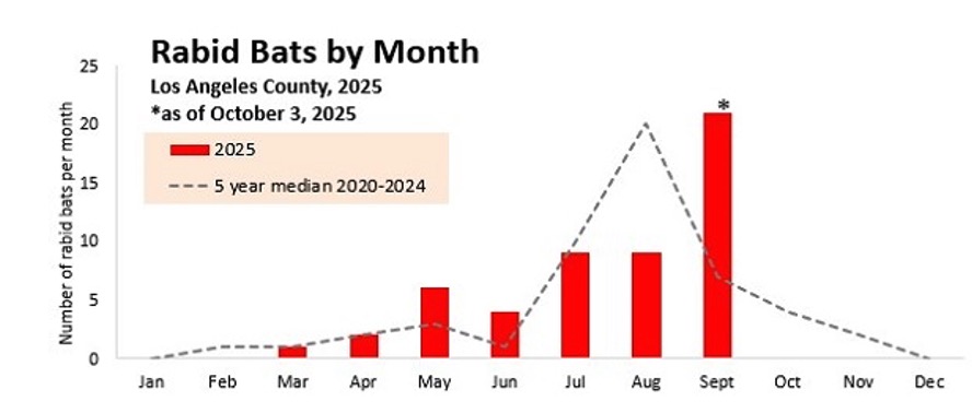 And, LA County Department of Public Health just warned that 61 bats have tested positive for rabies so far in 2025. (The most recorded previously was 68 in 2021.)