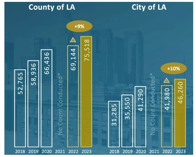 Homelessness and overcrowding. Year-by-year homelessness and overcrowding have increased in Los Angeles because the cost of housing has increased much faster than incomes.