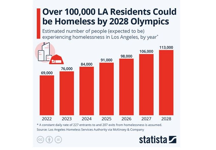 Furthermore, LA City’s and County’ s population is steadily declining, and the State projects a further decline of 500,000 people by 2060. This decline frees up existing housing, which will be available to those who stay. But since many of the homeless and over-crowded cannot afford monthly payments, they will remain homeless or live in overcrowded conditions.