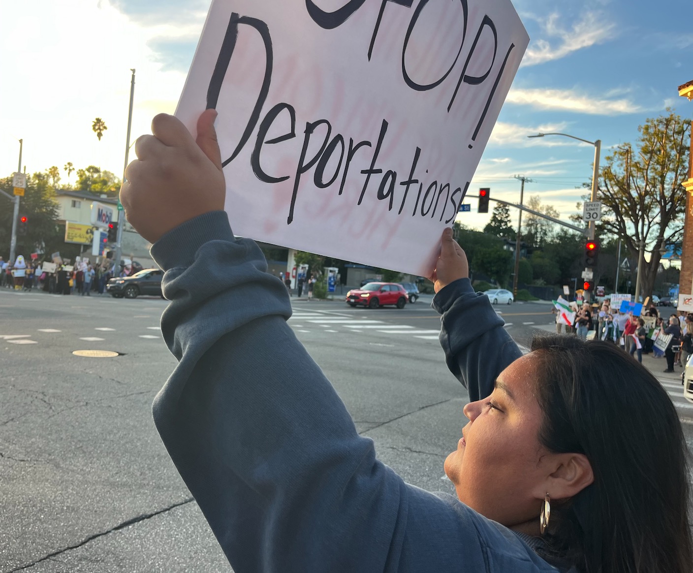 Councilmember Eunisses Hernandez, who represents Highland Park, participated in the street protest. A longtime leader for immigrant rights and against police brutality, Hernandez held a sign stating “Stop Deportations.” Hundreds joined in the boisterous, often upbeat, thoroughly peaceful demonstration.