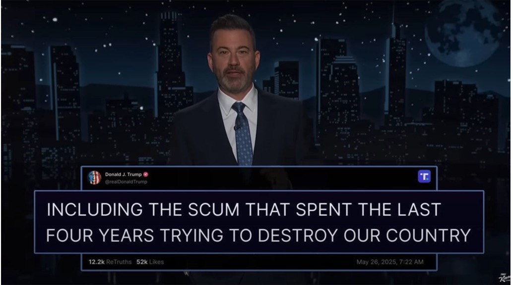 But despite Kimmel, Steven Colbert, and the snarky, snide, and nasty Seth Meyers doing a GREAT job getting a brash-talking, trash-talking, overly-impulsive, and too-often-boorish Donald Trump re-elected by pissing off the conservative segments of our nation (and a whole lotta centrist and even moderate/liberal segments)…