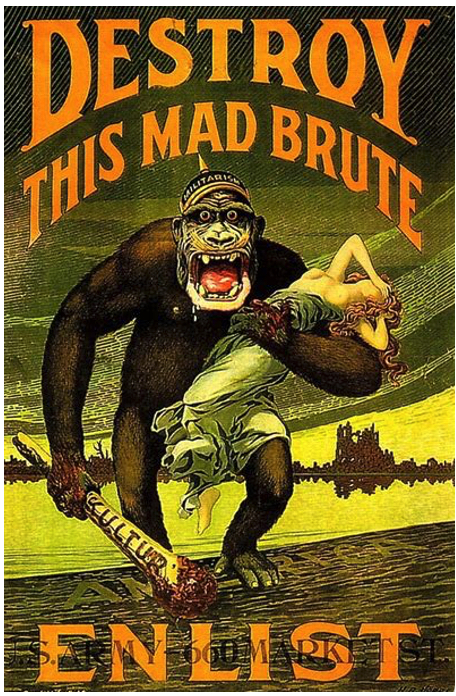 - Enormous domestic propaganda was orchestrated through the Committee of Public Information. Their efforts included portrayals of German soldiers as vicious animals, as shown below.