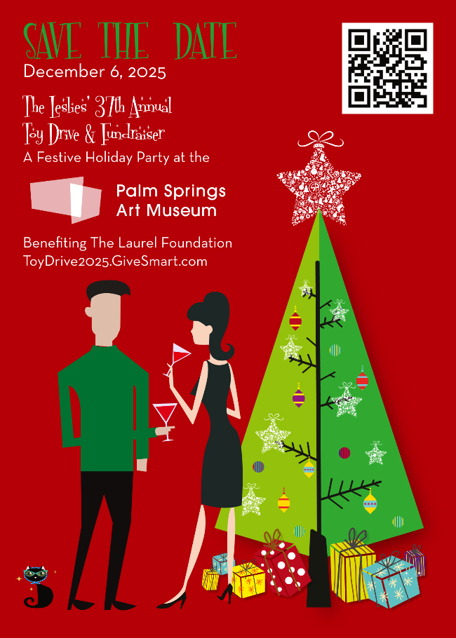 Please join Sam and Ashan Leslie for their very special Holiday evening affair at the Palm Springs Art Museum, December 6th, featuring a hosted bar, gourmet dinner, raffle, silent and live auctions, with Christmas carols and a visit from Santa and Mrs. Claus. It’s a cherished tradition for nearly four decades, bringing holiday cheer to families in need.
