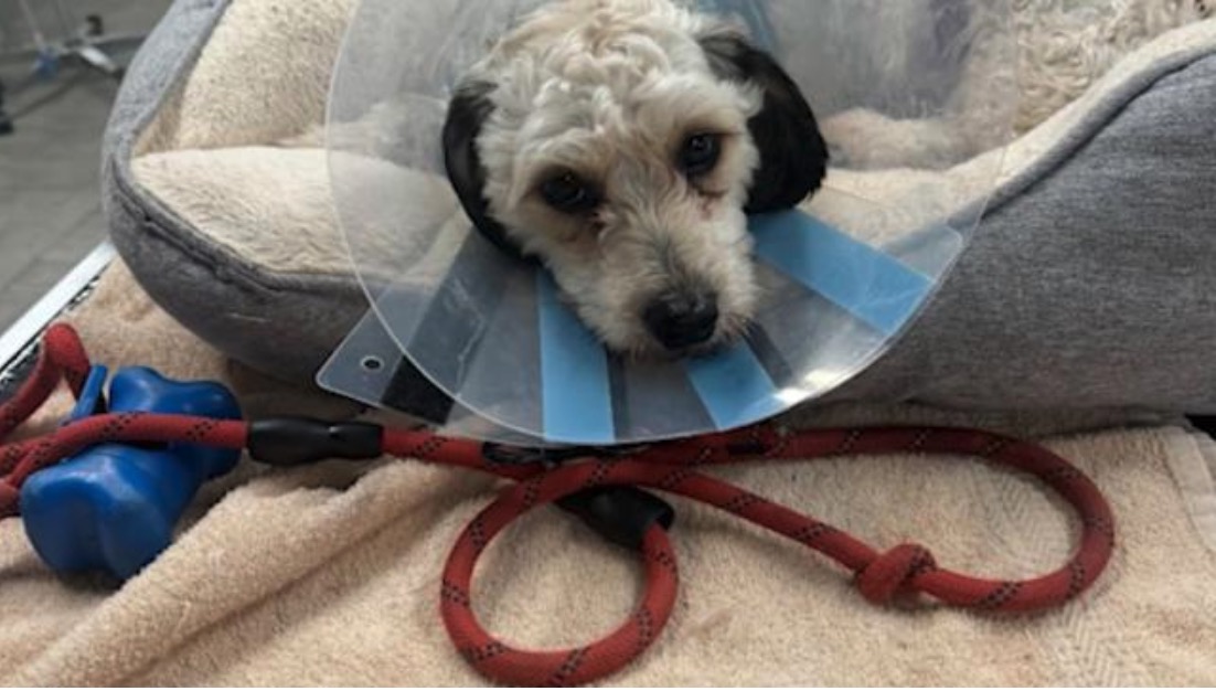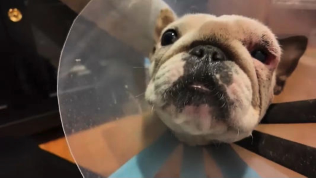 The docile little French Bulldog is “now covered with bites,” she said and needed stitches. Her left eye is badly swollen and cut, and her left shoulder was dislocated, but her owners say they are just happy she survived.