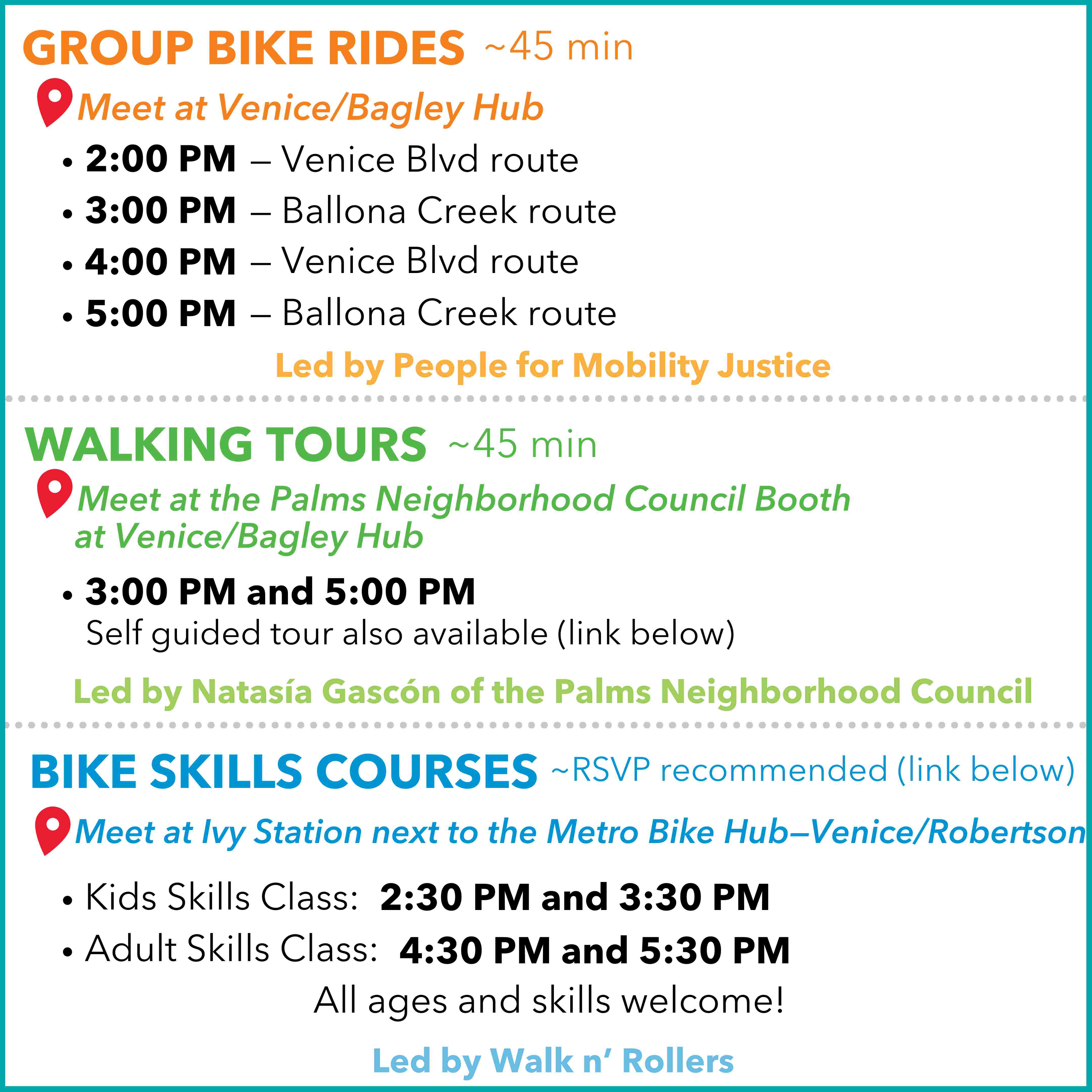 • Visit https://www.ciclavia.org/venice_blvd_event & https://www.ciclavia.org/venice_blvd_event#guided_group_bike_rides_and_walks_venice_blvd_event for more detailed information