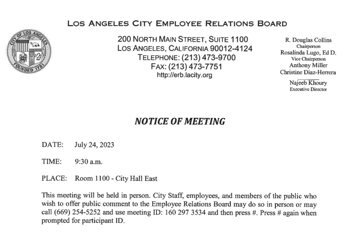 City of Los Angeles Employee Relations Board Agenda