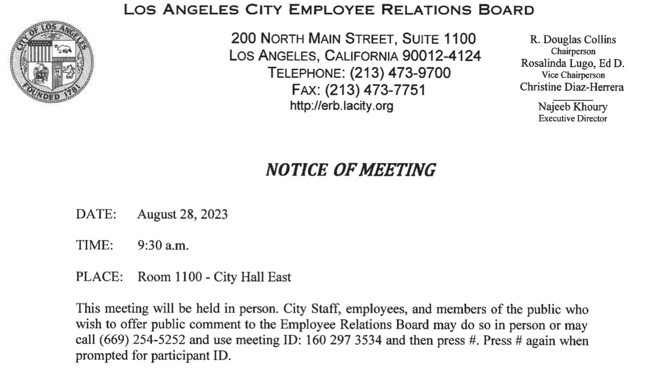 Fire Commission Meeting Room, City Hall East, Room 1820, 200 North Main Street – 18th Floor, Los Angeles, CA 90012