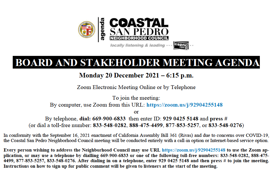 GOVERNMENT AFFAIRS COMMITTEE MEETING AGENDA Wednesday, January 5, 2022 6:00 PM