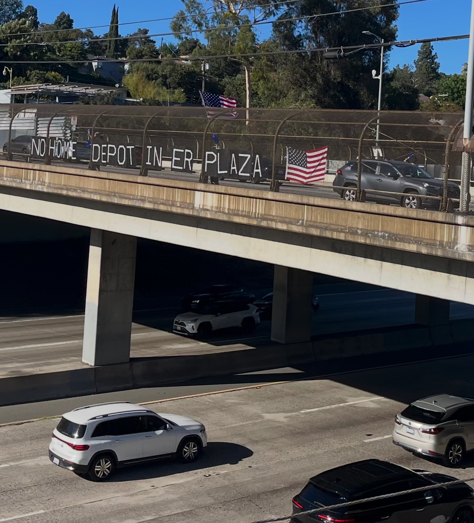 In September, EAPD joined with members of Civic Sundays for a freeway visibility event on the 2 Freeway in Eagle Rock to raise awareness and stop any new Home Depot in the neighborhood. The event drew many hundreds of supportive honks from thousands of passing vehicles.