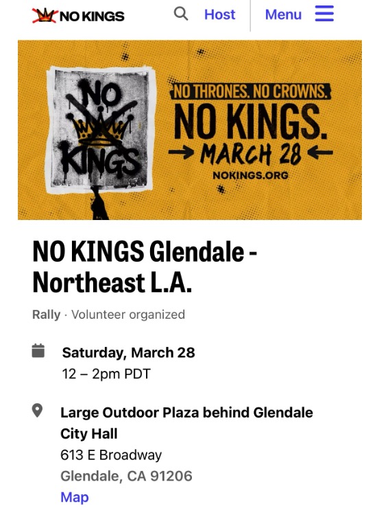 On this landscape, uniting residents in peaceful protest to push back vs. MAGA billionaires, bigotry, and broken promises and for resilient democracy at all levels takes on extra significance. That is both the challenge and the joy of the 3/28 No Kings rally in Glendale.